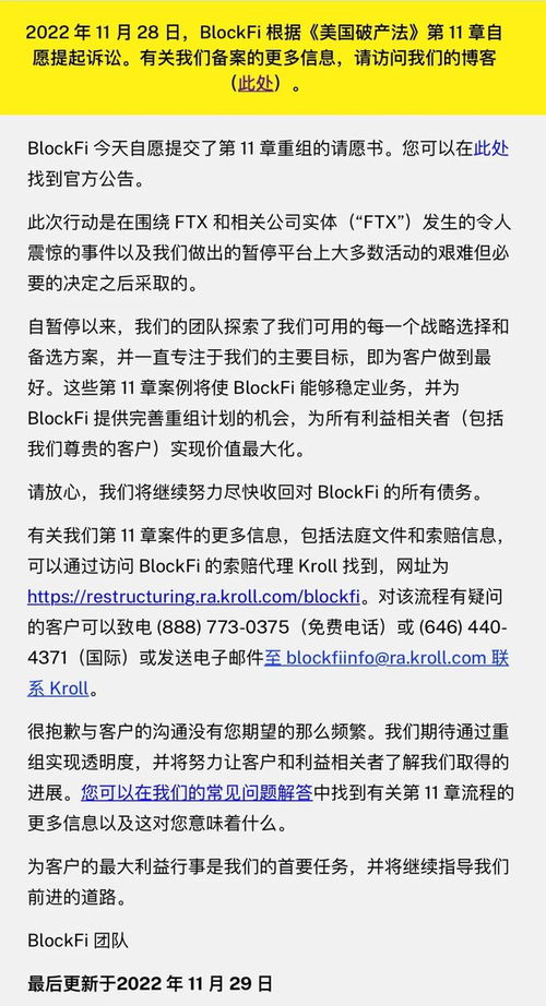 2. BlockFi:BlockFi是一家美国加密货币借贷平台,曾因FTX破产危机陷入困境。2022年11月,BlockFi考虑申请破产,但最终成功摆脱破产状态。