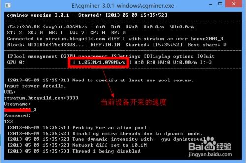 2. 配置挖矿软件:在挖矿软件中输入矿池地址、用户名和密码等信息,开始挖矿。